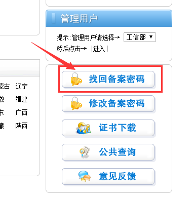 在線找回備案密碼的操作: